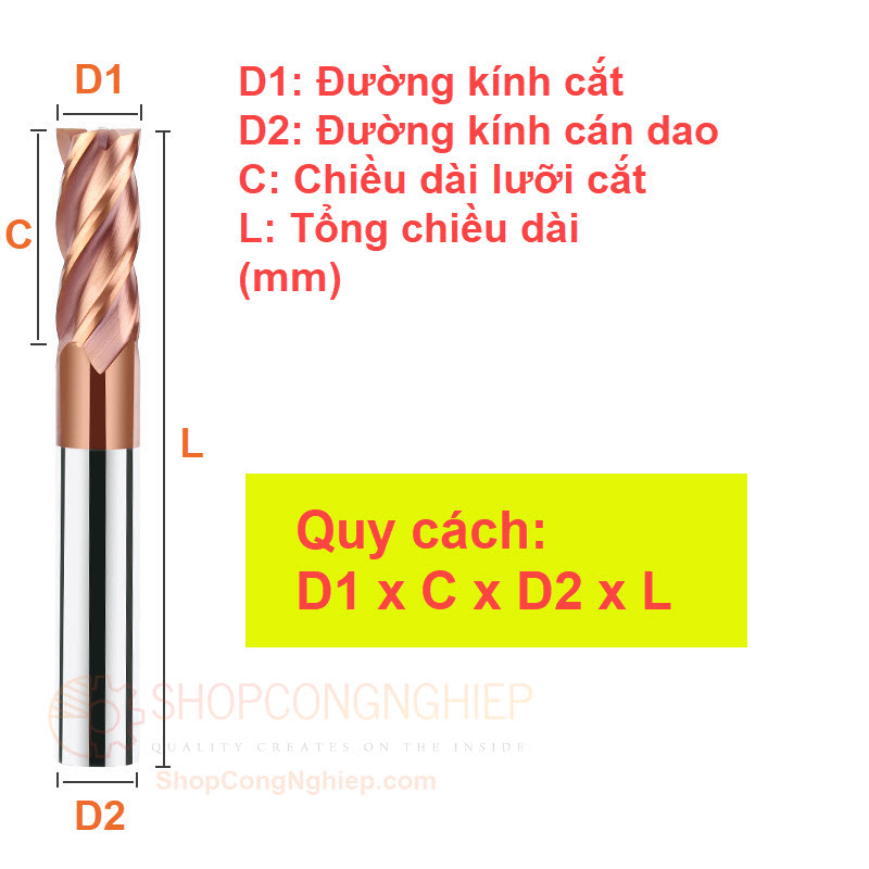 Dao phay ngón hợp kim Tungsten HRC60 UNC đáy phẳng 4 lưỡi cắt