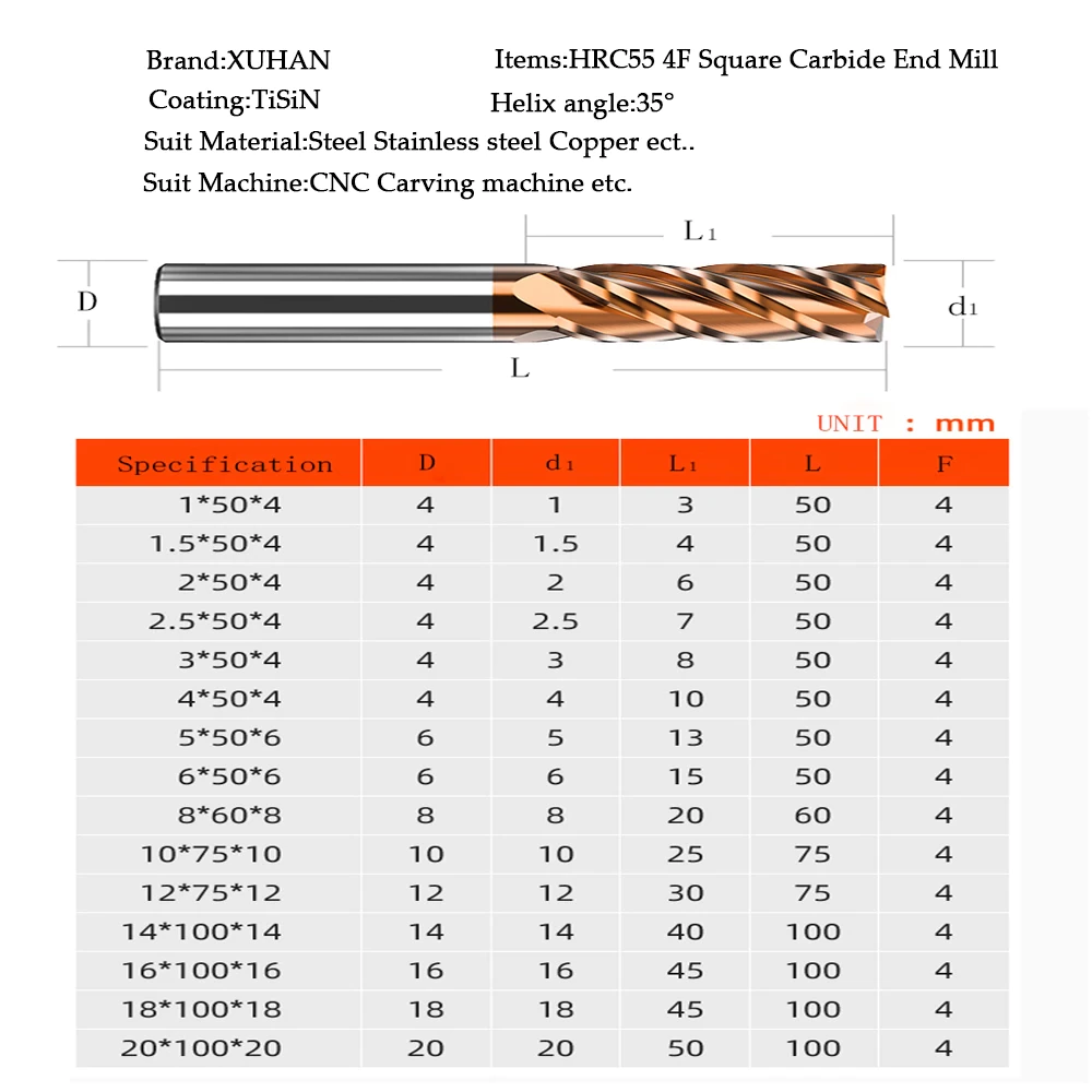Dao Phay Ngón Hợp Kim XUHAN 4 me phủ Tungsten HRC55